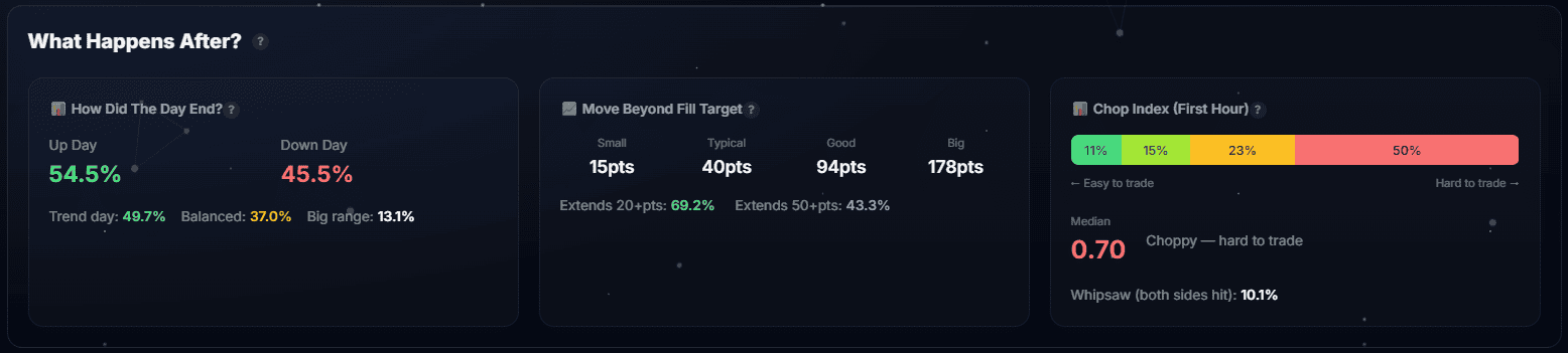 Think of it as a data-driven gap fill strategy builder that shows you the historical odds before the session opens.